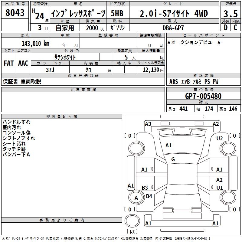 Все аукционы SUBARU IMPREZA SPORT