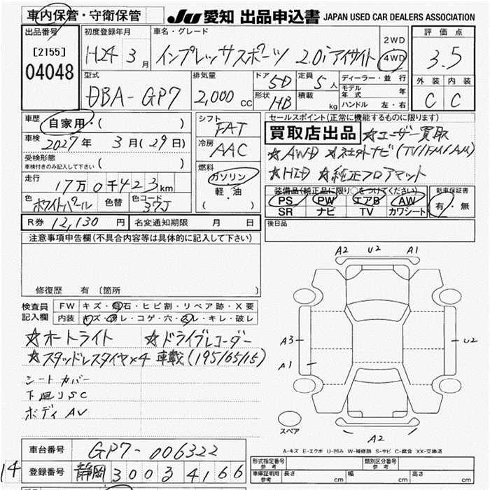Все аукционы SUBARU IMPREZA SPORT