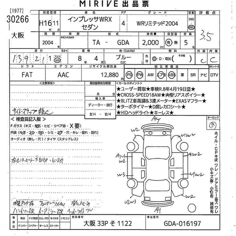 Все аукционы SUBARU IMPREZA WRX