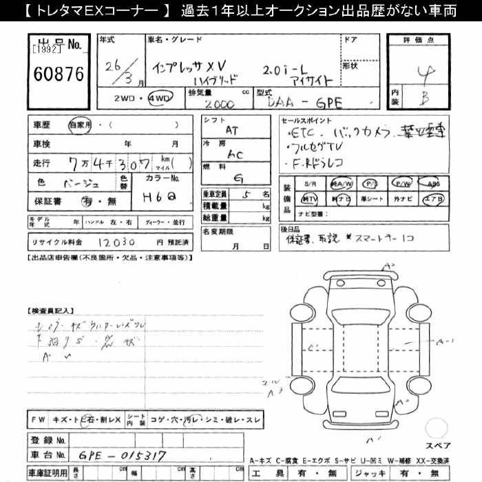 SUBARU IMPREZA XV 4WD HYBRID 2.0I-L EYESIGHT - лот 60876