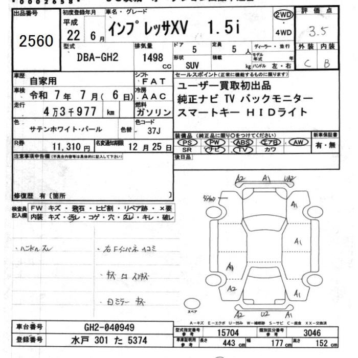 SUBARU IMPREZA XV - лот 2560
