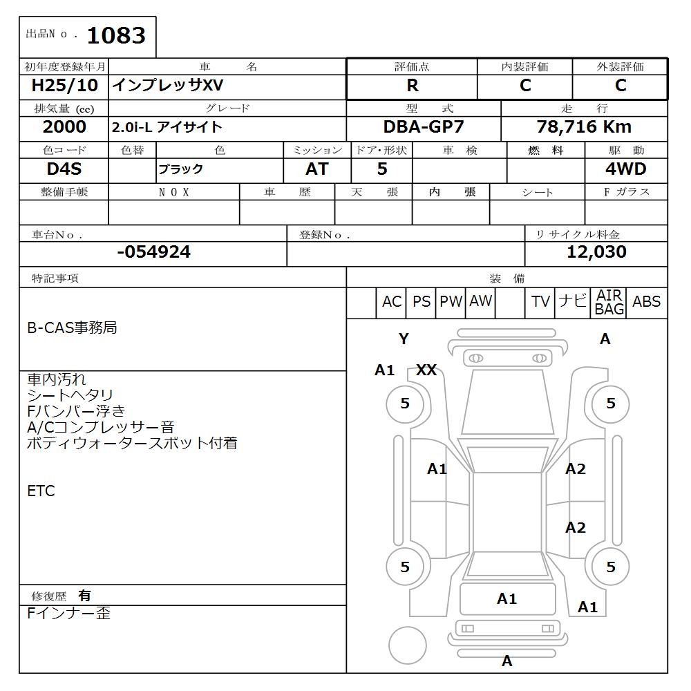 SUBARU IMPREZA XV - лот 1083