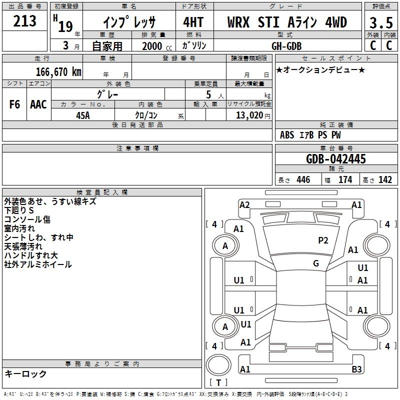 SUBARU IMPREZA WRX STI A LINE 4WD - лот 213