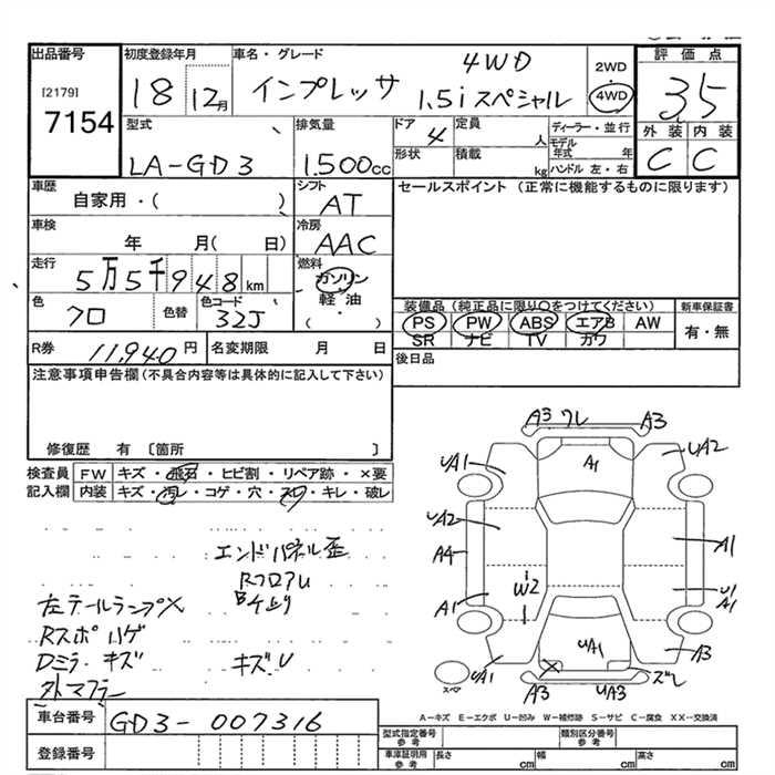 SUBARU IMPREZA 4WD 1.5I SPECIAL - лот 7154