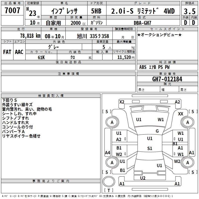 SUBARU IMPREZA 2.0I-S LIMITED 4WD - лот 7007