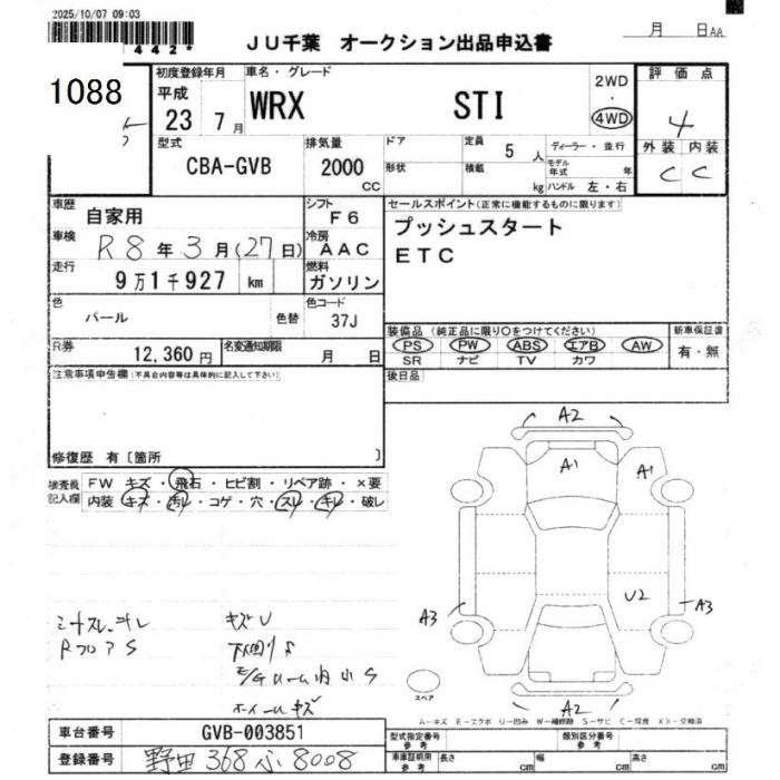SUBARU IMPREZA 4WD STI - лот 1088