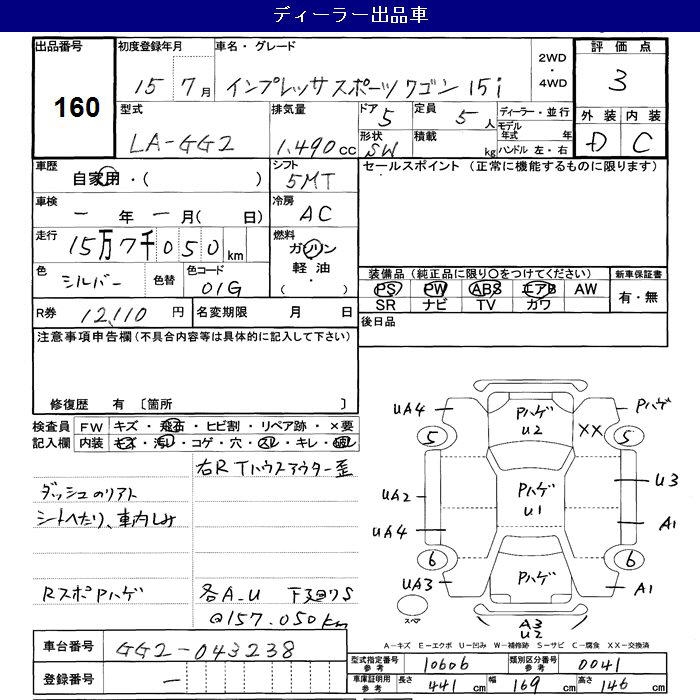 SUBARU IMPREZA 15i - лот 160