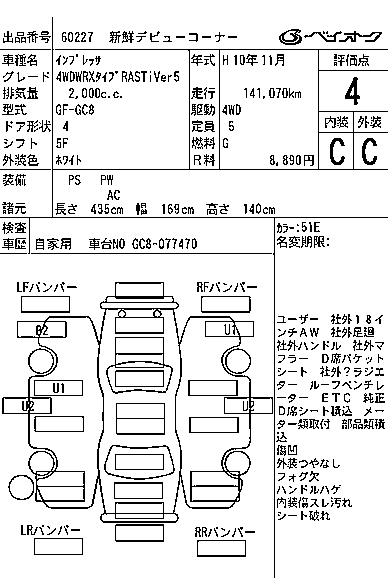 SUBARU IMPREZA 4WDWRX TYPE RASTI VER5 - лот 60227
