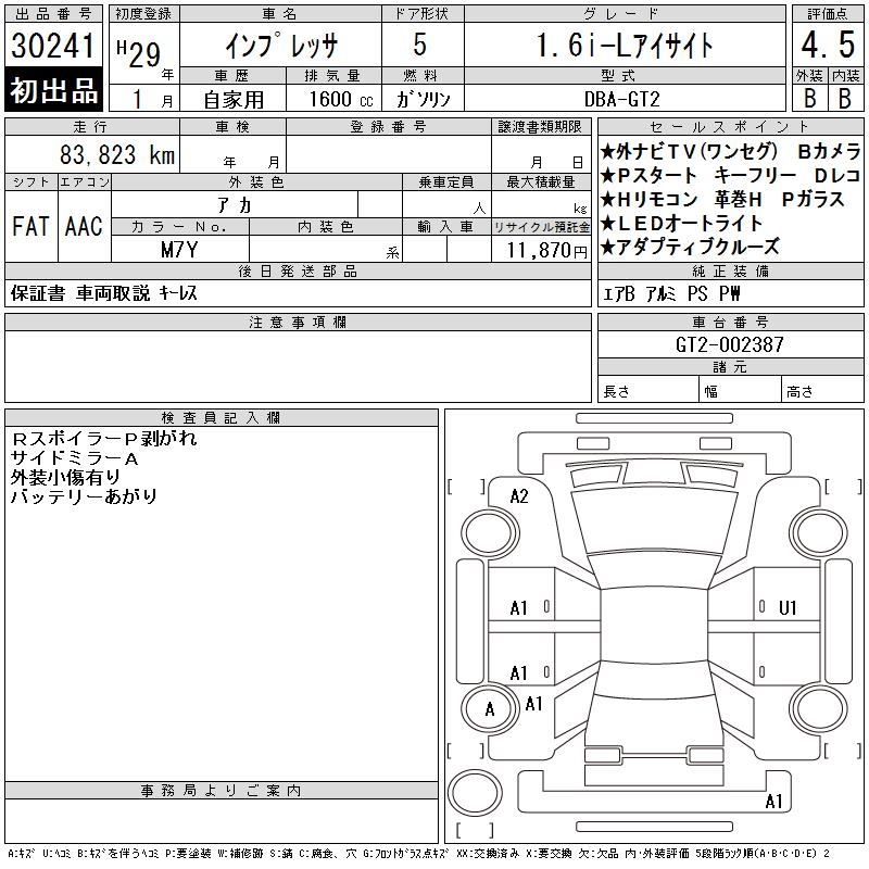 SUBARU IMPREZA 1.6I-L EYESIGHT - лот 30241