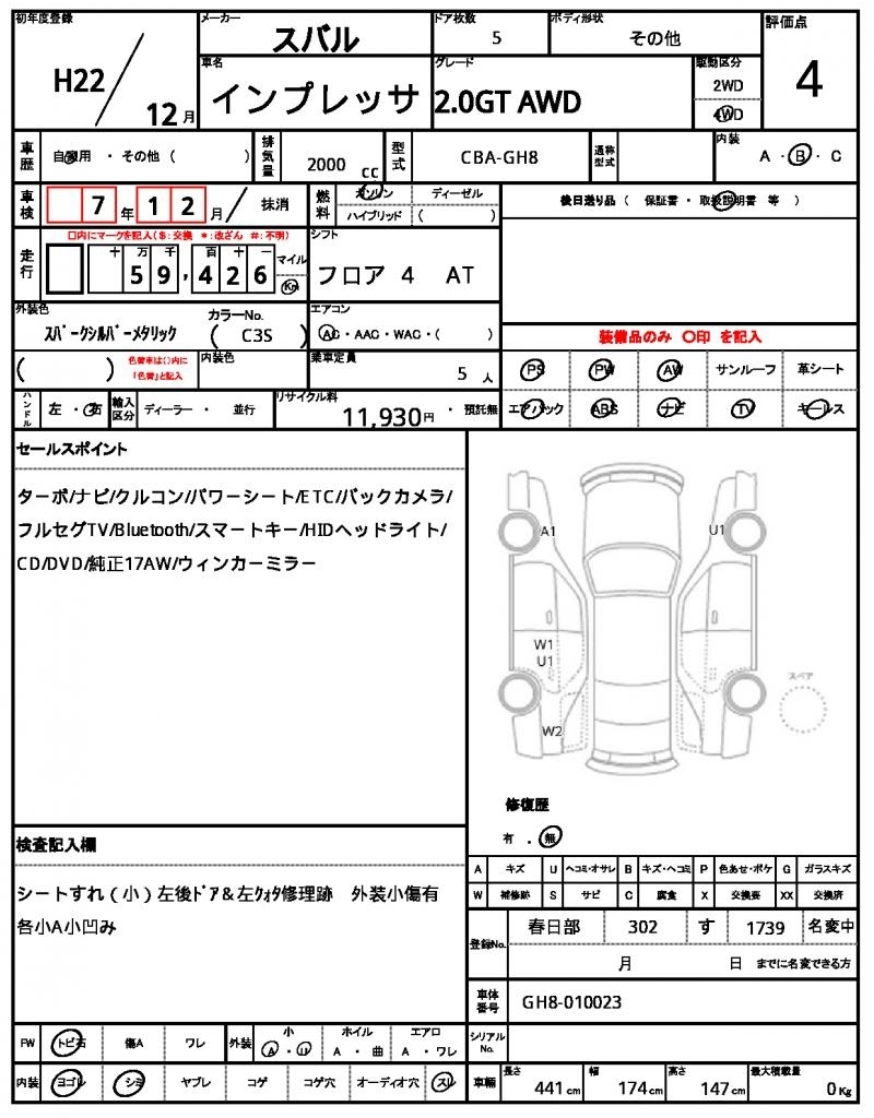 SUBARU IMPREZA - лот 851