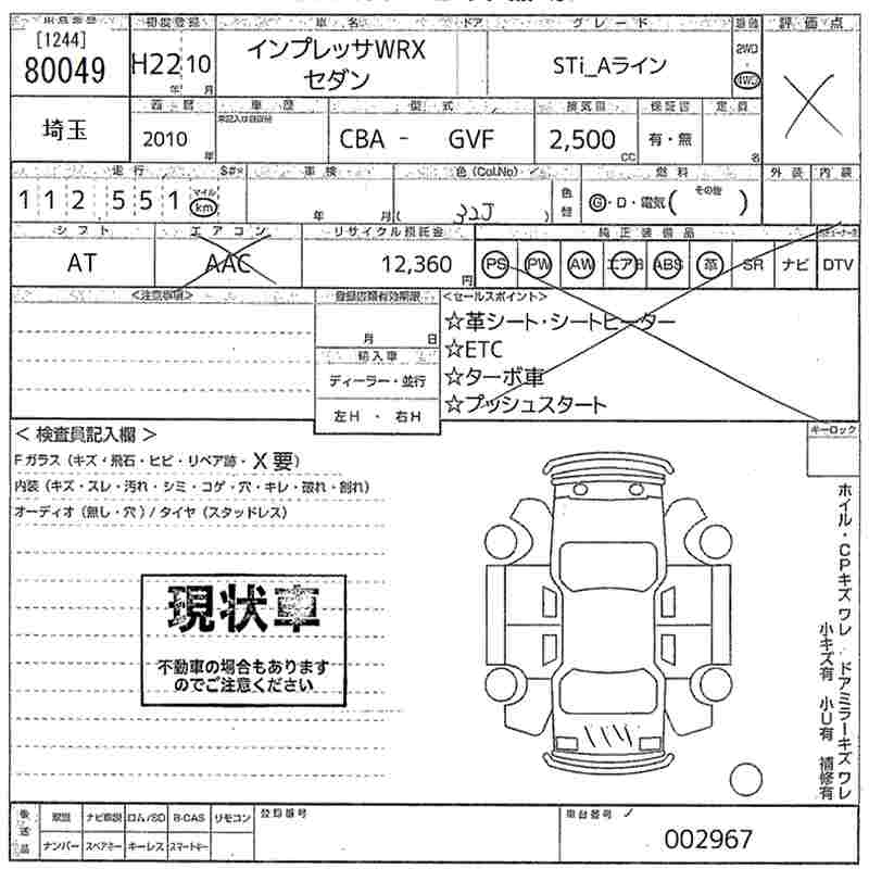 SUBARU IMPREZA STi_A line - лот 80049