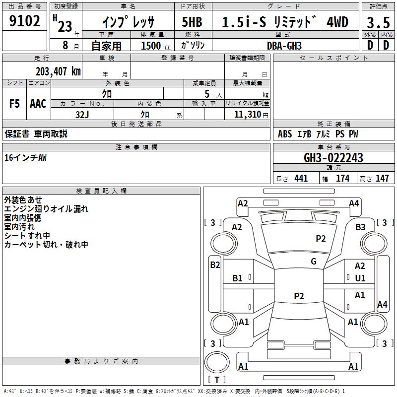 SUBARU IMPREZA - лот 9102