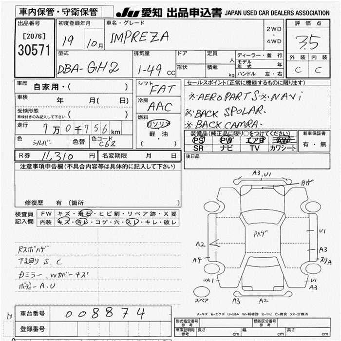SUBARU IMPREZA - лот 30571