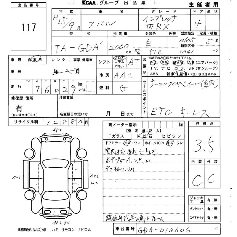 SUBARU IMPREZA - лот 117