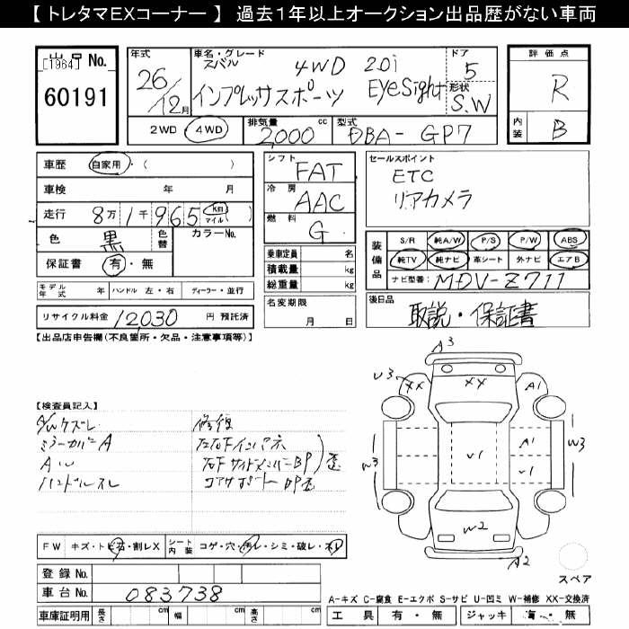 SUBARU IMPREZA спорт 4WD 2.0i EyeSight - лот 60191
