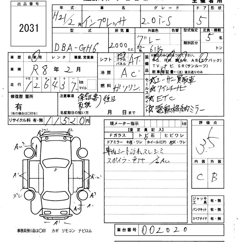 SUBARU IMPREZA - лот 2031