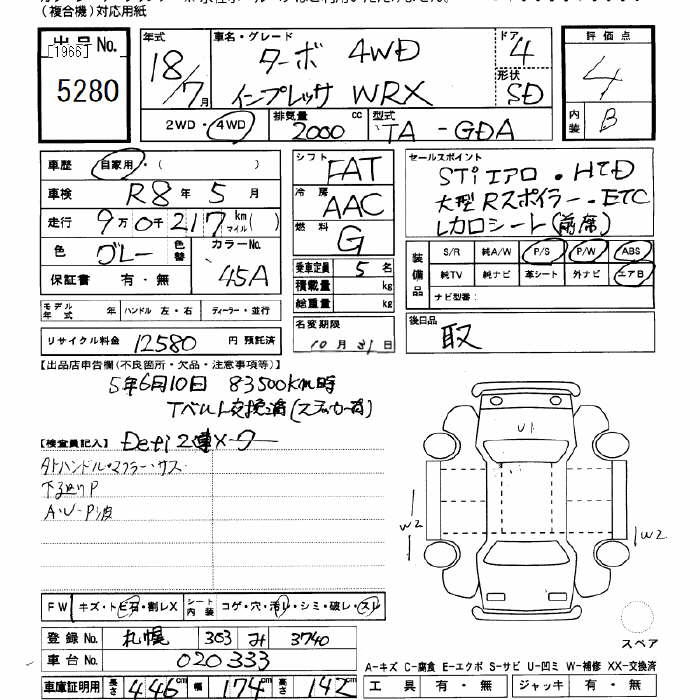 SUBARU IMPREZA 4WD WRX turbo - лот 5280