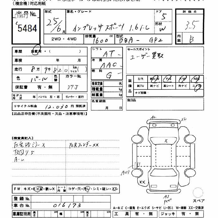 SUBARU IMPREZA спорт 1.6i-L - лот 5484