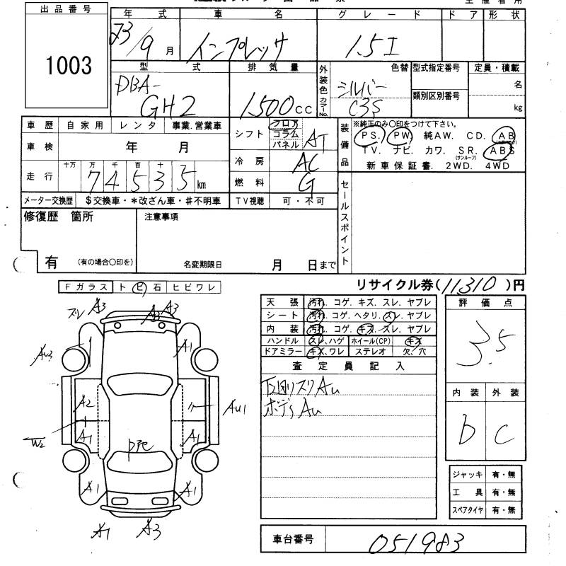 SUBARU IMPREZA - лот 1003