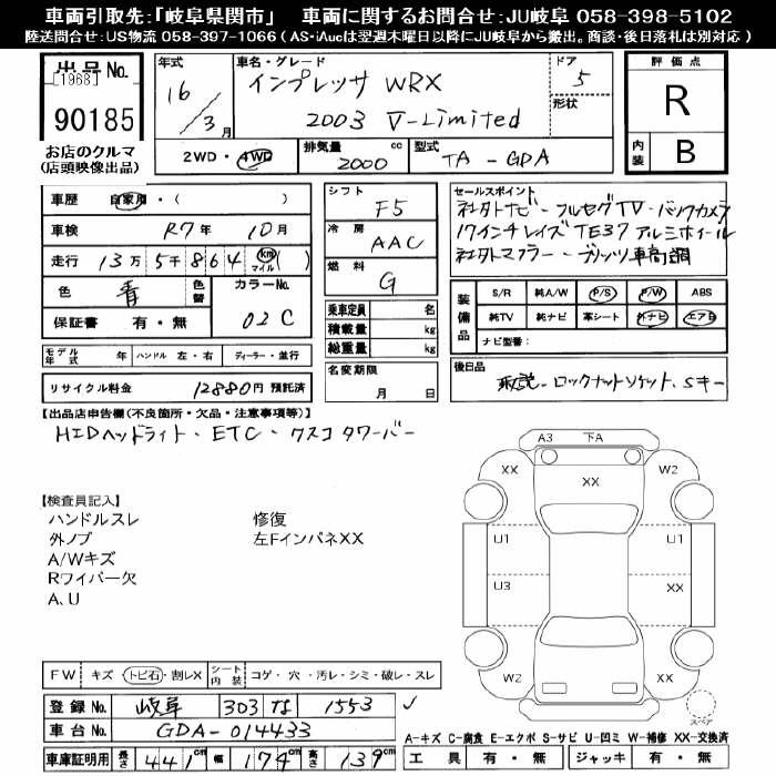 SUBARU IMPREZA 4WD WRX 2003 V limited - лот 90185