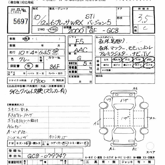 SUBARU IMPREZA 4WD WRX STi Ver.5 - лот 5697