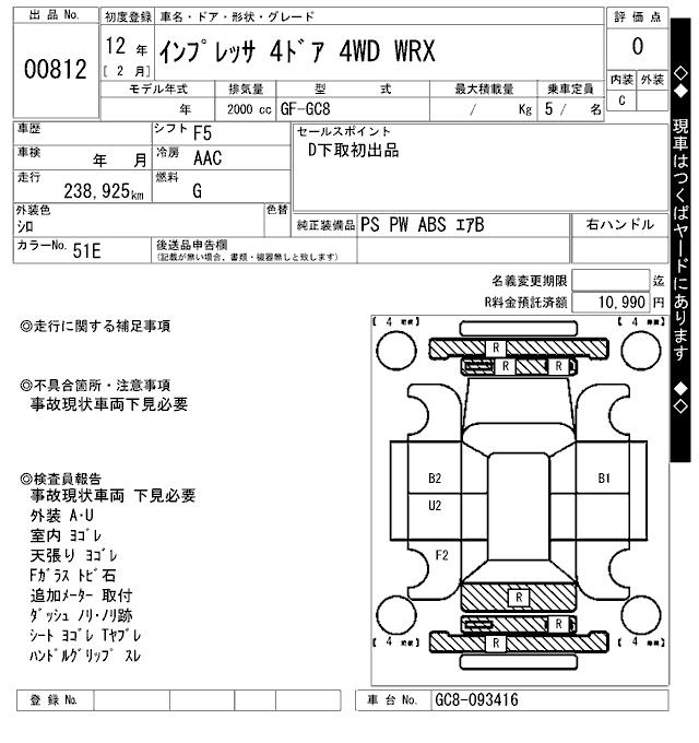 SUBARU IMPREZA - лот 812