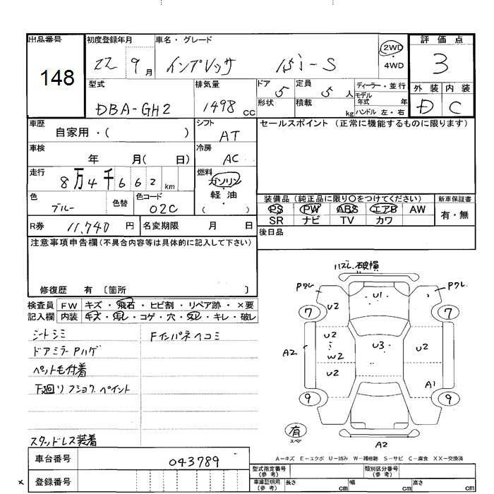 SUBARU IMPREZA - лот 148