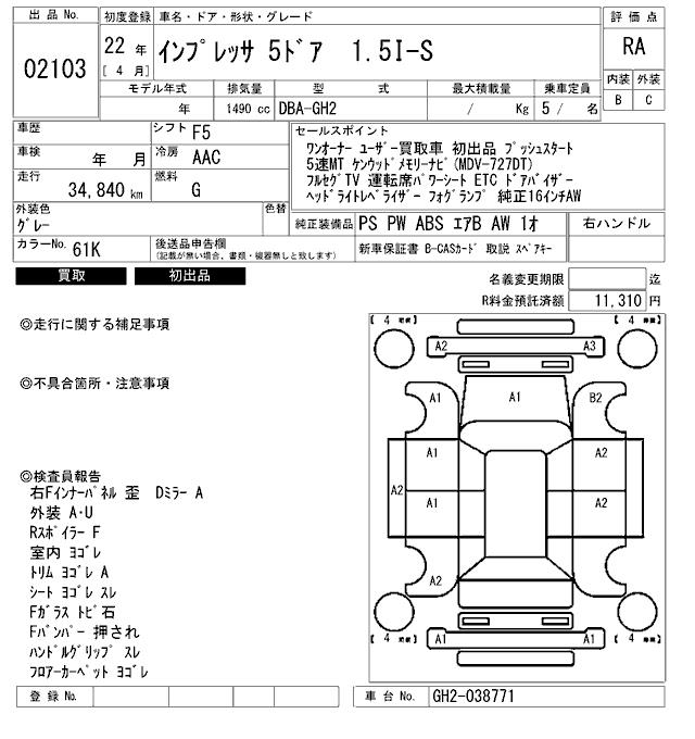 SUBARU IMPREZA - лот 2103
