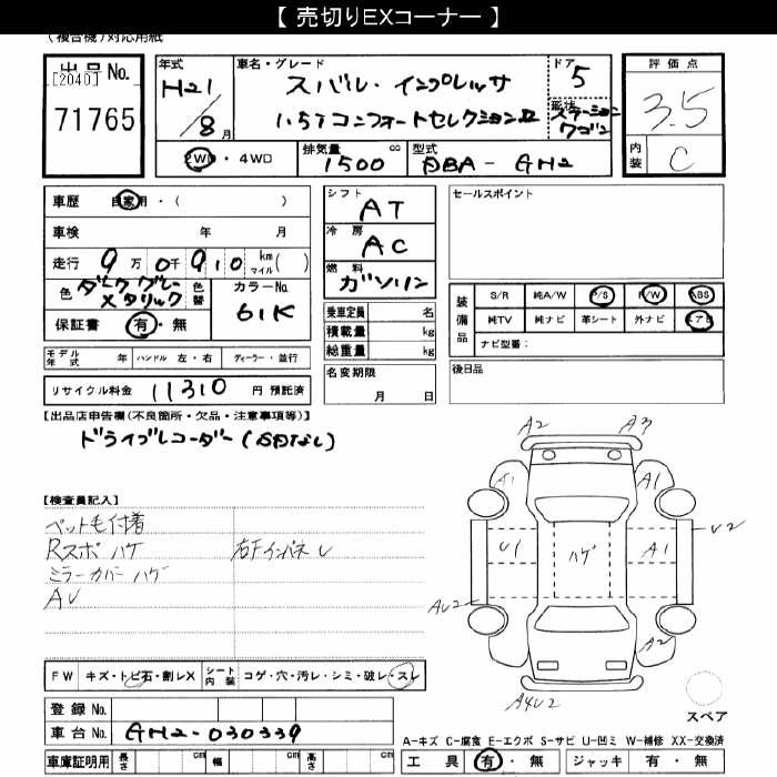 Все аукционы SUBARU IMPREZA