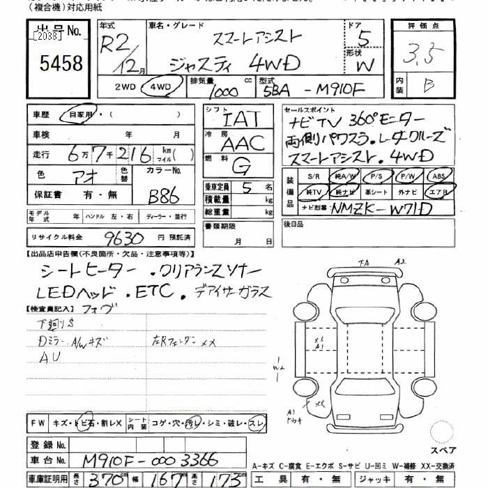 SUBARU JUSTY - лот 5458