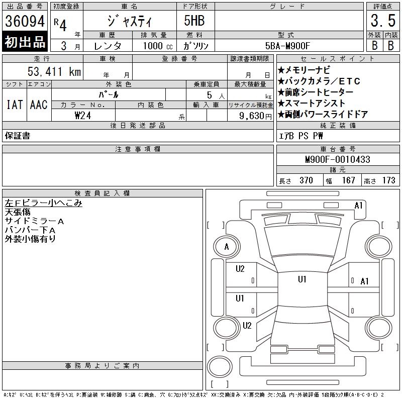 SUBARU JUSTY - лот 36094
