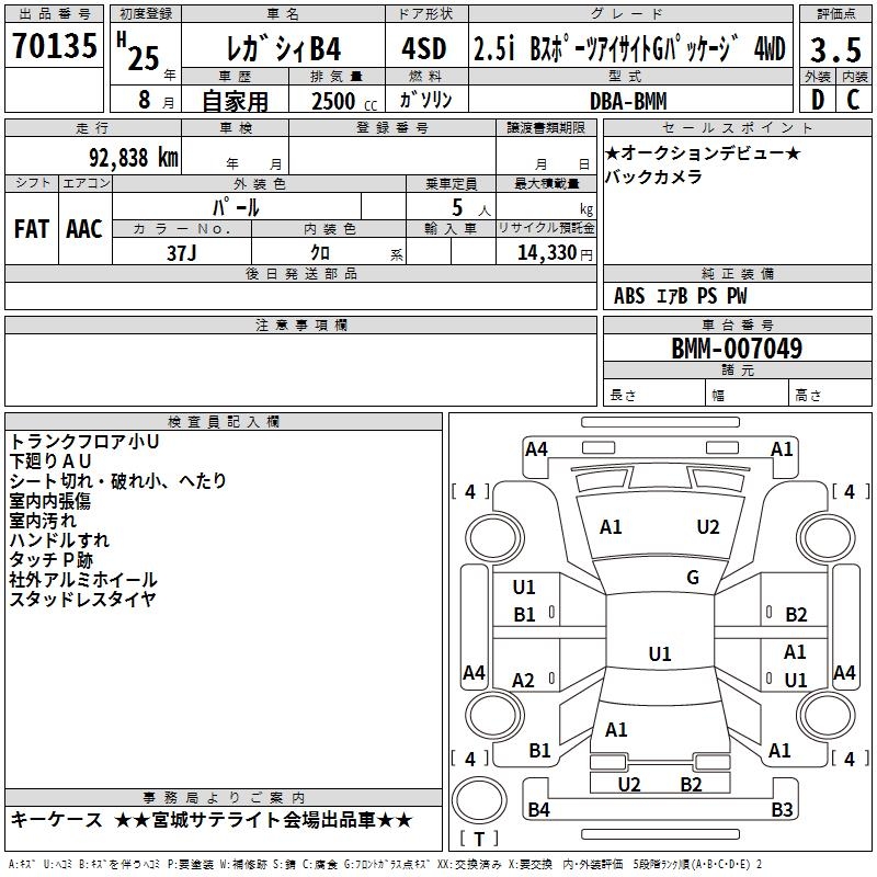 SUBARU LEGACY B4 - лот 70135