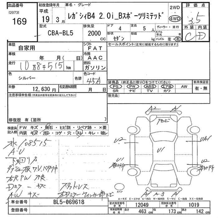 SUBARU LEGACY B4 - лот 169