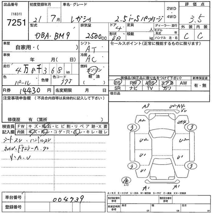 SUBARU LEGACY B4 - лот 7251