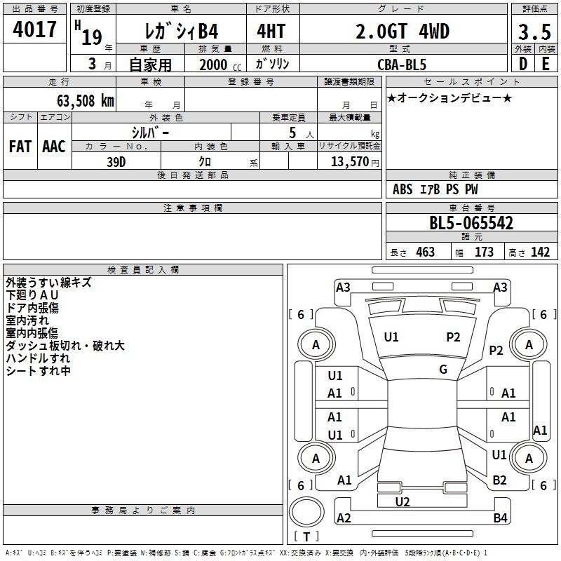 SUBARU LEGACY B4 - лот 4017