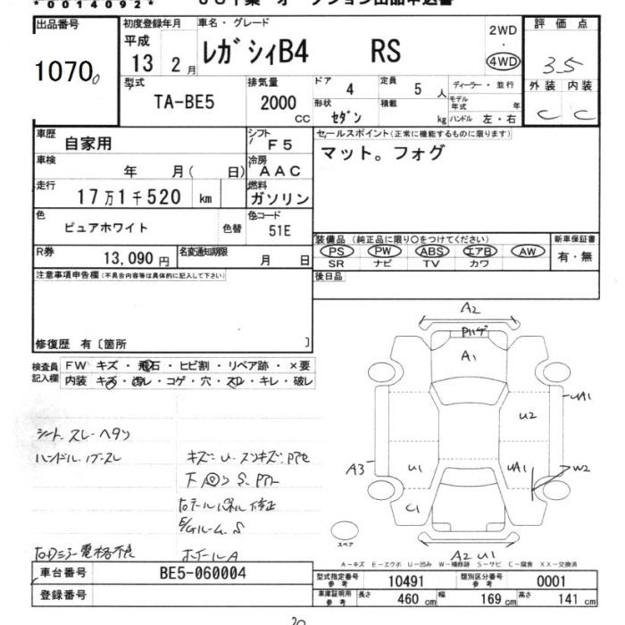 SUBARU LEGACY B4 - лот 1070