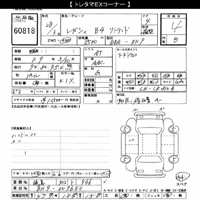 SUBARU LEGACY B4 - лот 60818