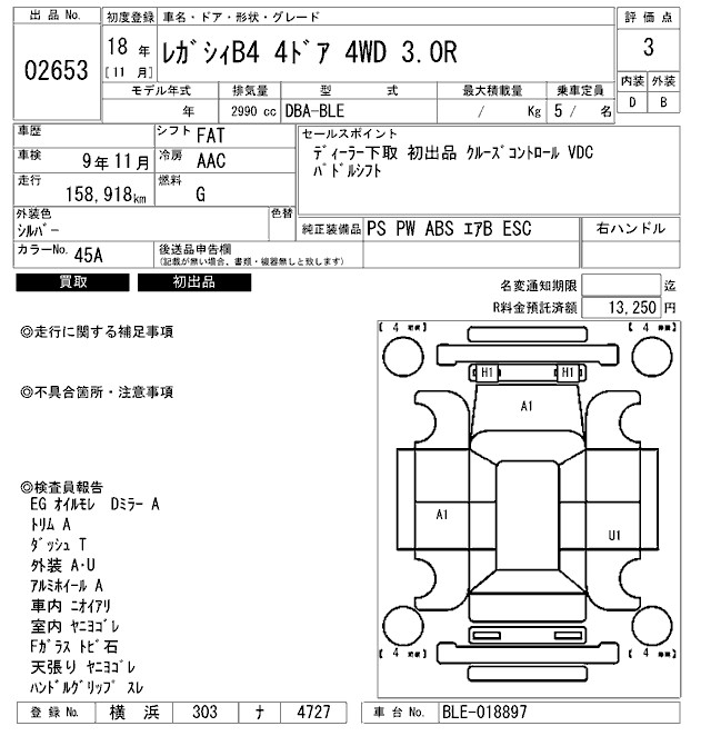 SUBARU LEGACY B4 - лот 2653