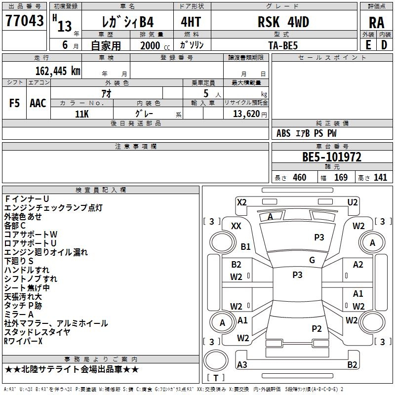 SUBARU LEGACY B4 - лот 77043