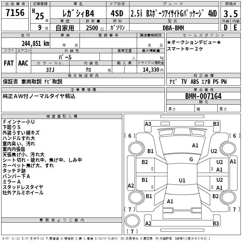SUBARU LEGACY B4 - лот 7156