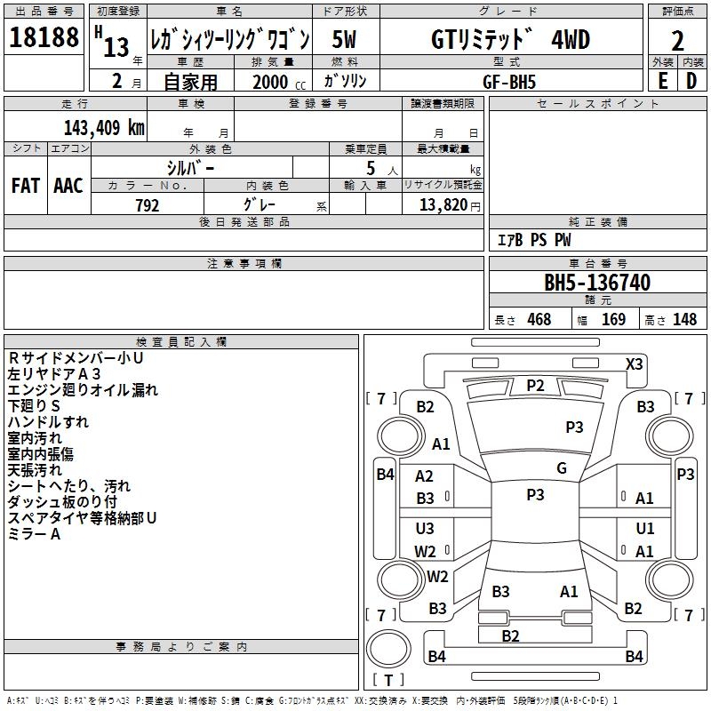 SUBARU LEGACY TOURING WAGON - лот 18188