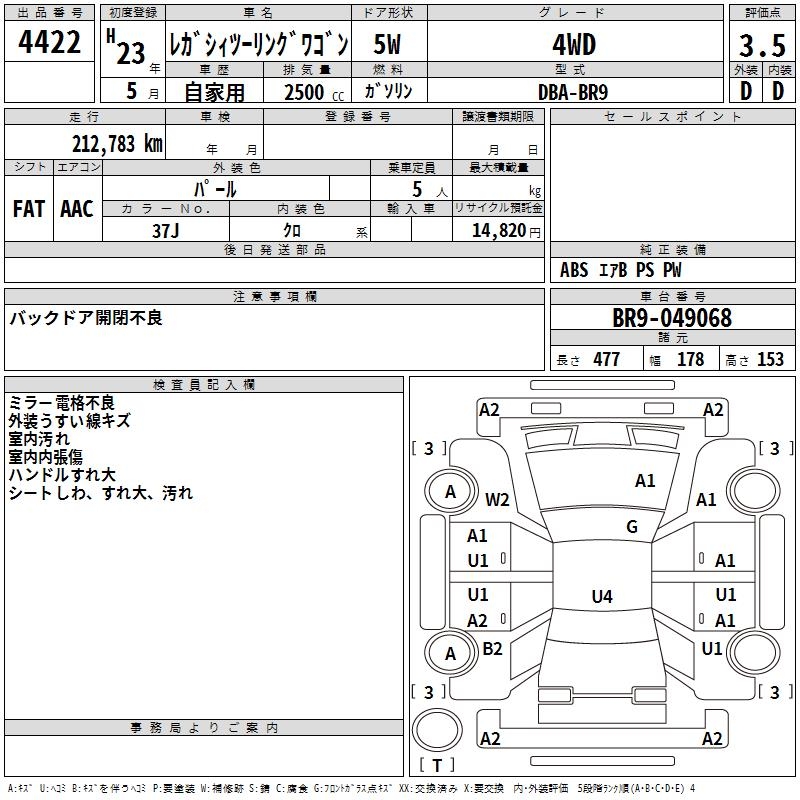 Все аукционы SUBARU LEGACY TOURING WAGON