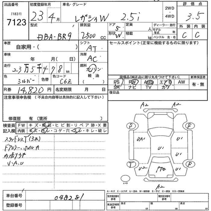 SUBARU LEGACY WAGON - лот 7123