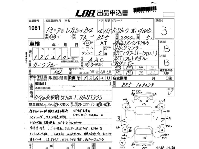 SUBARU LEGACY B4 - лот 1081