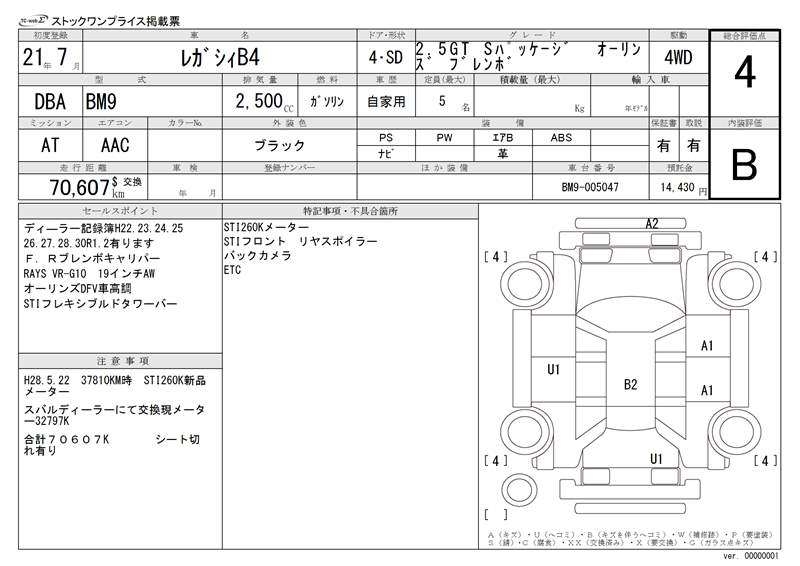 SUBARU LEGACY B4 - лот 4389
