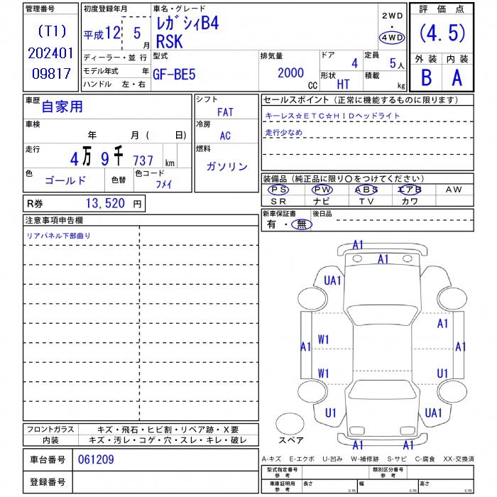 Все аукционы SUBARU LEGACY B4