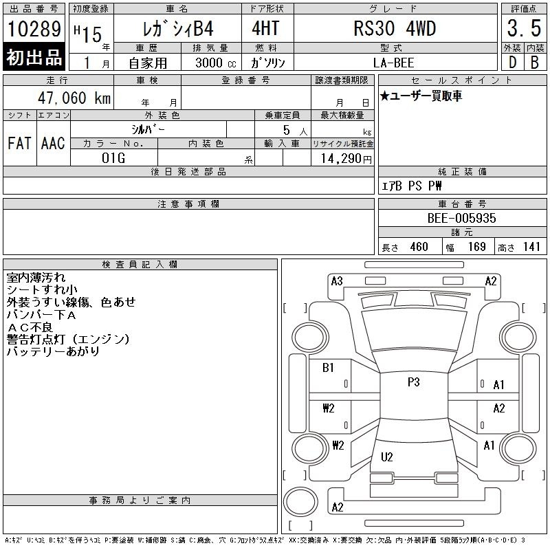 SUBARU LEGACY B4 - лот 10289