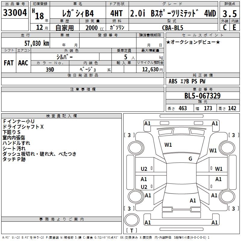 SUBARU LEGACY B4 2.0I B SPORT LIMITED 4WD - лот 33004