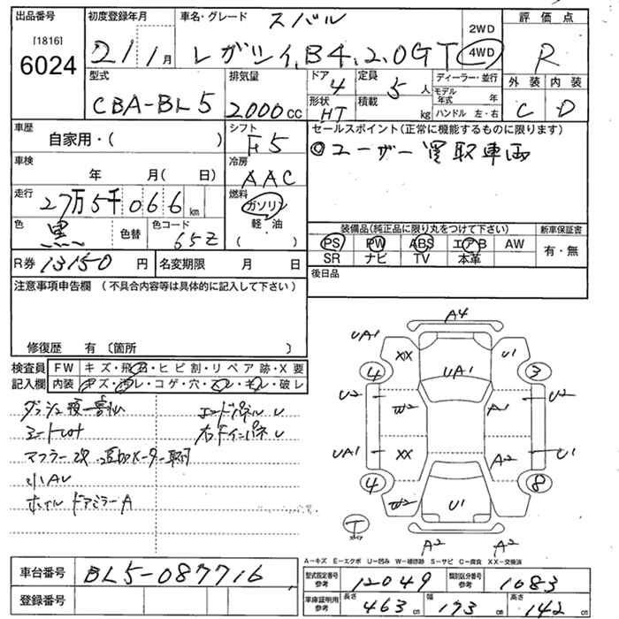 SUBARU LEGACY B4 - лот 6024