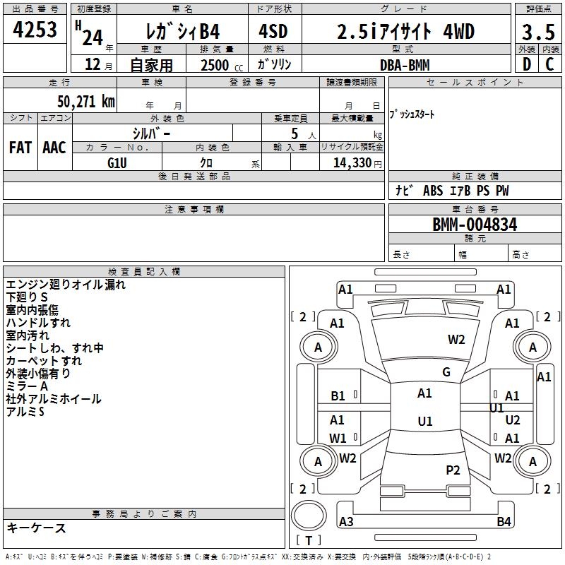 SUBARU LEGACY B4 2.5I EYESIGHT 4WD - лот 4253